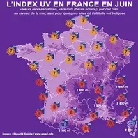 Valeurs moyennes du niveau d'UV en France au mois de juin
